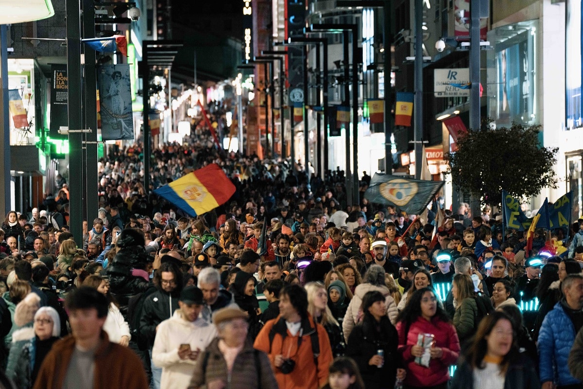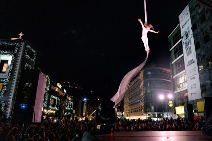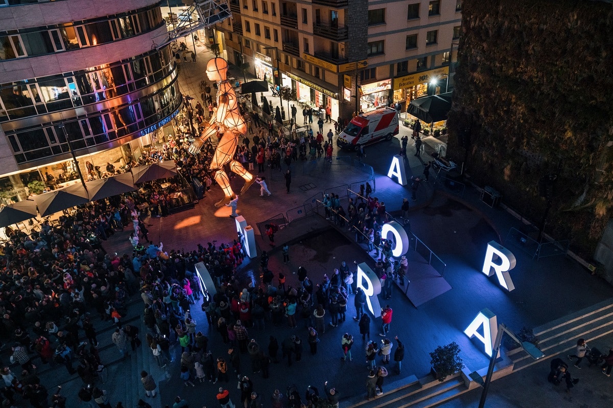 El eje comercial que une Escaldes-Engordany y Andorra la Vella fue escenario del espectáculo de la Fura dels Baus con que dio comienzo la Semana Grande de las finales de la Copa del Mundo de esquí alpino de Grandvalira.