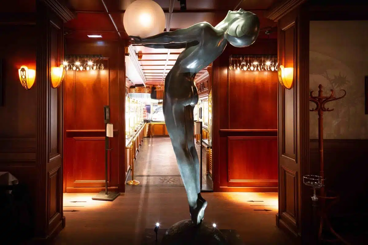 Una espectacular cascada de bogavantes preside “Le Plateau Royal” secundado por una selección de mariscos entre los cuales destacan ostras de Thau, gambas, langostinos, almejas, cangrejos de mar o delicatesen de productos con seis variedades del auténtico salmón de Noruega. Si apostamos por los pescados preparados al momento, todas las opciones son tentadoras: La langosta a la americana, el rodaballo salvaje, el filete de dorada con anís estrellado, las ostras calientes en sabayón de moscatel, la quenelle de lucio en salsa Nantua o la vieira St. Jacques.