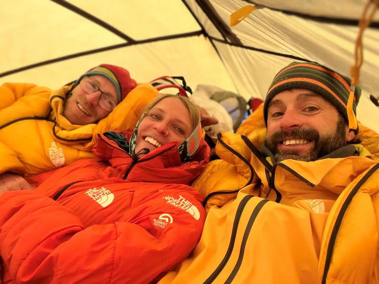 Otro detalle a tener en cuenta es que la apertura se realizó en condiciones totalmente invernales, nevando todas las jornadas, con viento y frío, que endurecieron la ascensión– sobre todo la última jornada- al punto de que llegaron a la cumbre oeste con una tormenta de nieve terrible que apunto estuvo de costarles una desgracia. El descenso fue épico con la ventisca arreciando mientras los tres escaladores lograron escapar por los pelos de la trampa, al mismo tiempo que improvisaban un rapel de fortuna, tras otro camino de la seguridad del último campo de altura.