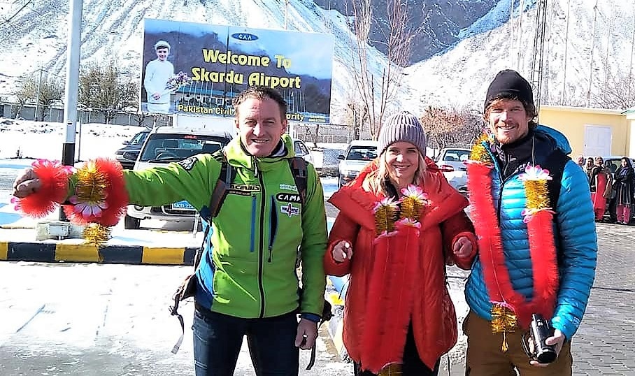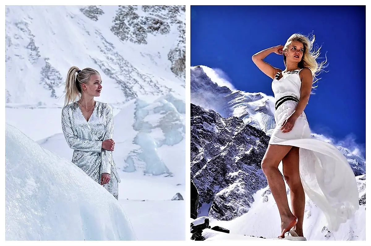 El alpinista ruso Denis Urubko y el canadiense Don Bowie lideran la pequeña expedición invernal al Broad Peak, en la que está integrada la modelo y alpinista finlandesa Lotta Hintsa. El equipo llegó al campo base de la montaña el pasado 26 de diciembre. La aproximación estuvo marcada por la infección respiratoria de Don Bowie que retrasó algunos días los primeros movimientos de los alpinistas. No obstante, el último día del año el buen tiempo, aunque con mucho frio -20°C, Lotta Hintsa, exmiss Finlandia 2013, se atrevió a dar la bienvenida al 2020 con una sesión fotográfica a pie del campo base del Broad Peak, a 5.000 metros. La modelo finlandesa posó con un vestido de la tienda virtual escandinava Nelly