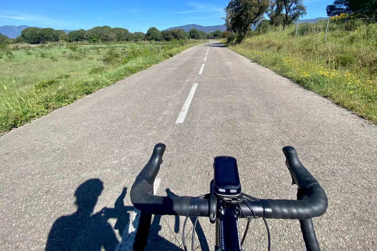 Partimos de Cabanes por carreteras tranquilas, atravesando el llano ampurdanés en dirección norte. El objetivo es alcanzar Le Perthus, pero evitando las vías principales. Por eso, tras pasar por Cantallops (km 16,5), nos adentramos en un tramo de carreteras secundarias muy agradables, perfectas para calentar antes del primer gran desafío.