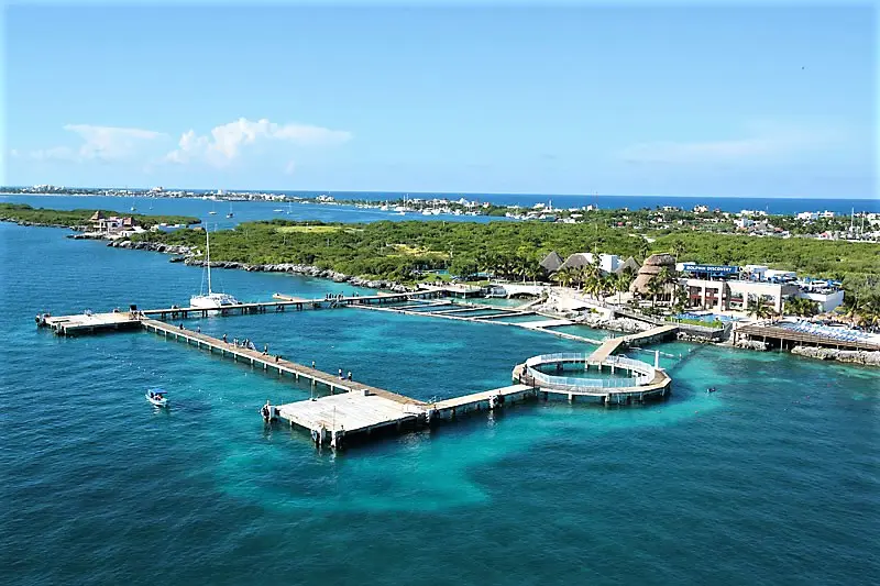 La instalación está rodeada por arena blanca, palmeras verdes y un mar turquesa cristalino. Cuentan con el único hábitat con delfines de Cancún y con la certificación de AZA (Association of Zoos & Aquariums). La máxima certificación a la que puede aspirar cualquier hábitat con animales bajo cuidado humano. En isla Mujeres tambien podemos visitar el pueblo, las playas de la isla o el Parque Natural de Arrecifes Garrafón en la punta más al sur. Excelente esacio para conocer la belleza de arrecífes y acantilados frente a las aguas color turquesa del auténtico Caribe de Mexico. En esta isla se puede ver un criadero de tortugas marinas o visitar el Museo Subacuático de Arte (MUSA). Una experiencia realmente exclusiva y que difícilmente encontrarás en otro lugar.