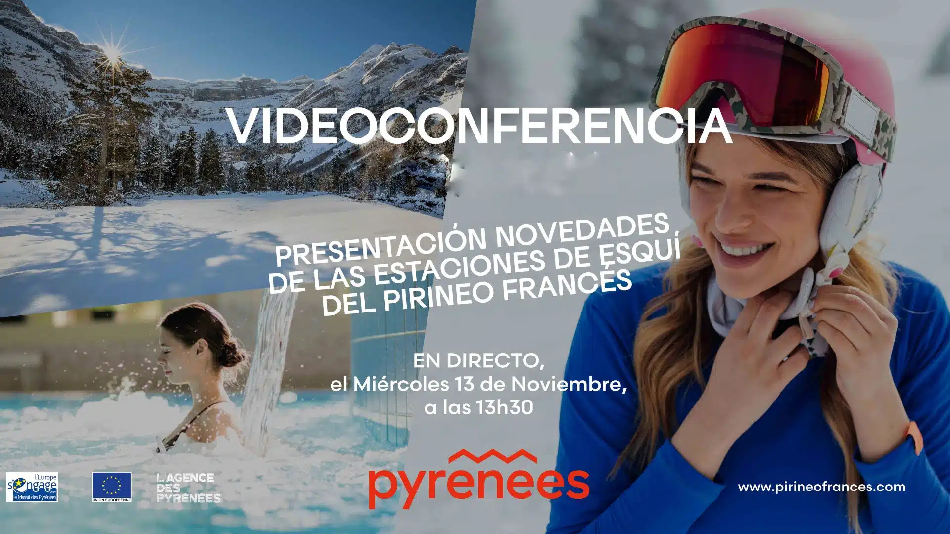 ¿Eres un apasionado de la nieve y de las aventuras invernales? Este miércoles 13 de noviembre a las 13.30 h, el Pirineo francés presentará en directo las novedades de sus 38 estaciones de esquí y 16 centros termales. Conecta con el auténtico espíritu de los Pirineos y prepárate para una temporada inolvidable. Acompaña a los expertos de Neiges Catalanes, Haute Garonne, Hautes Pyrénées y Béarn Pyrénées Pays Basque, quienes te acercarán las principales novedades y experiencias en la nieve para este invierno.
