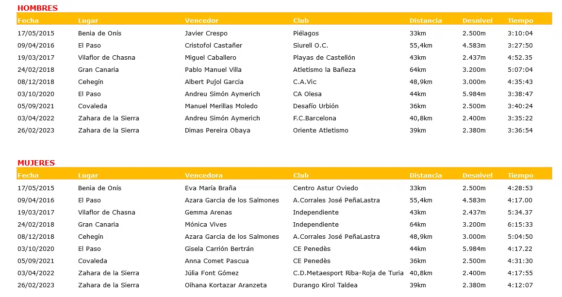 Los Campeonato de España de trailrunning, versión Federación Española de Atletismo (RFEA), se celebrán desde el año 2015.