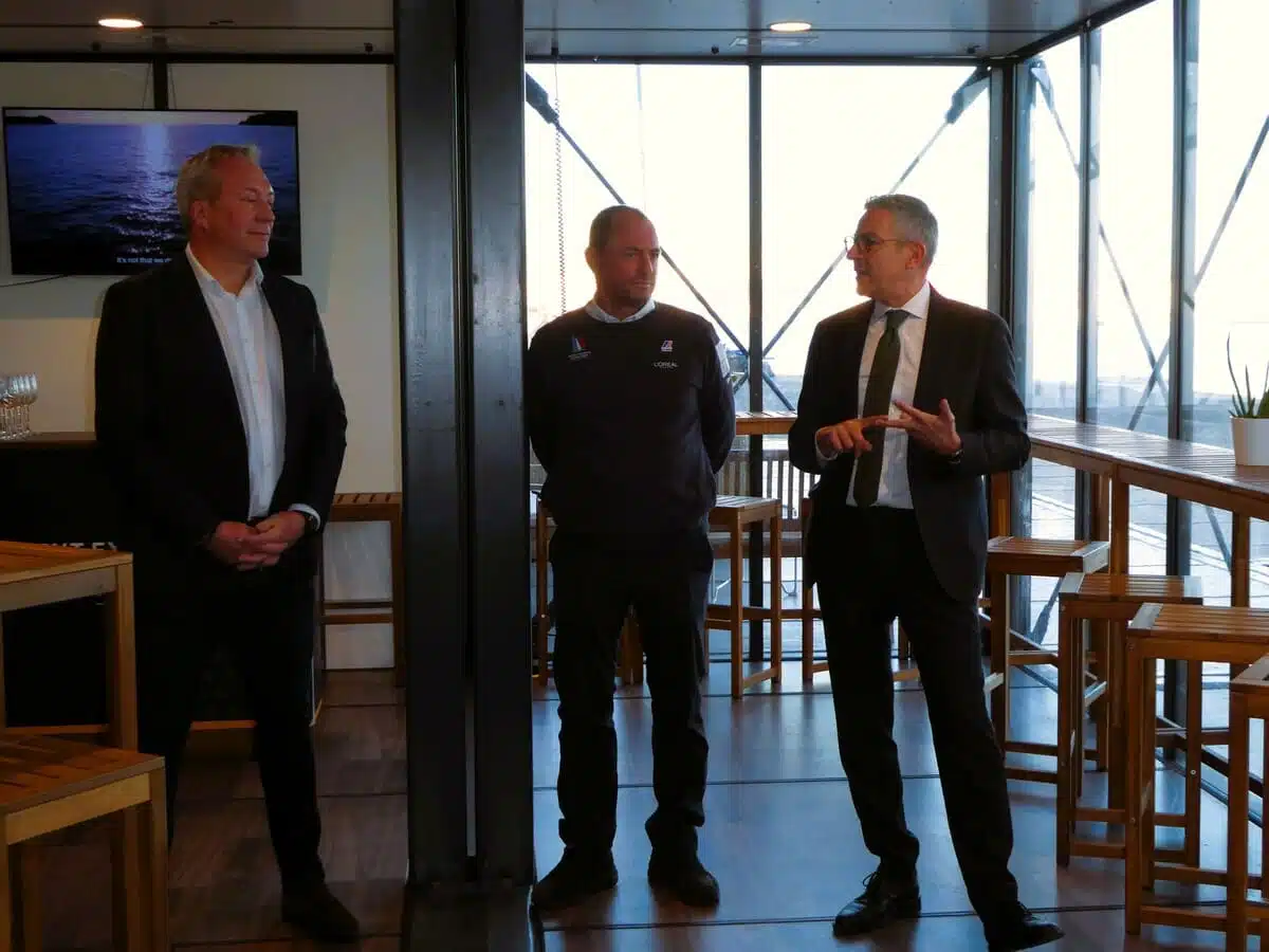 Kandler destacó que «con el tiempo, el Orient Express Racing Team empleará a 115 personas en Barcelona, donde se encuentra nuestra base, y recibirá cerca de 500 invitados al día durante la competición de la America’s Cup. Nuestra colaboración con el grupo Saur es muy importante, ya que nos proporcionará un sistema móvil completo para gestionar y reciclar el agua corriente».