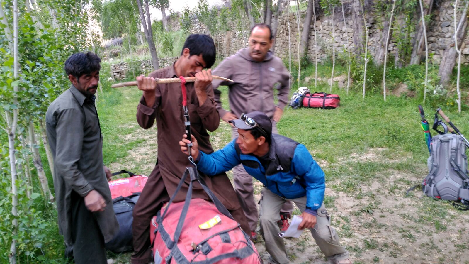 Una vez en el último pueblo del camino -Askole- antes de adentrarse en la zona del Baltoro, aprovechan el día perdido para hacer la siempre compleja tarea de distribuir las cargas entre los 64 porteadores, que cargan en la espalda un máximo de 25kg.Este último vestigio de civilización, está poblado por unas 120 familias de la secta Shia.