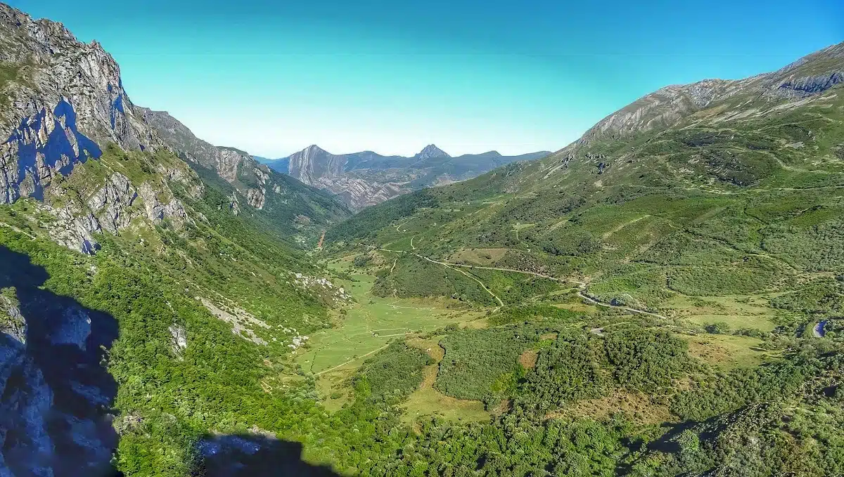 Partiendo desde la localidad de Saliencia llegas hasta el Alto la Farrapona o Collada de Balbarán. Aquí comienza el trekking con una hermosa vista del macizo de Las Ubiñas.
