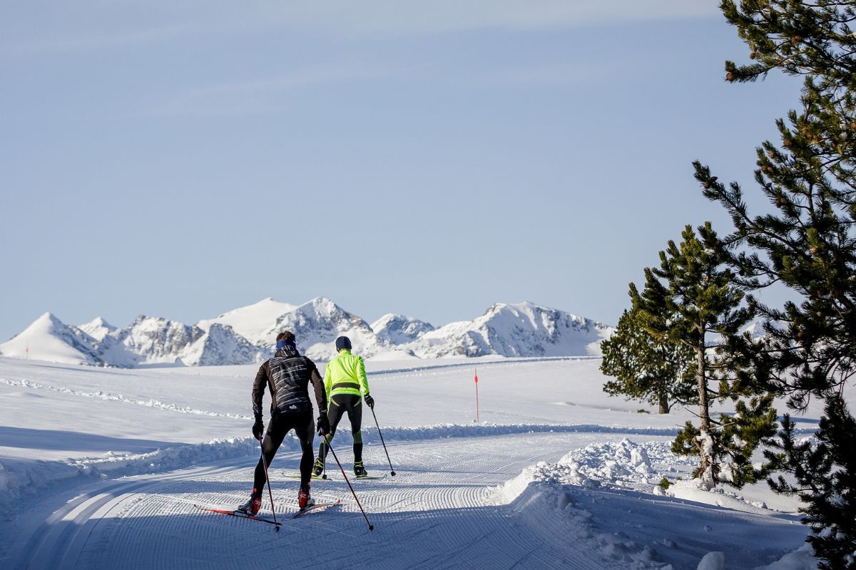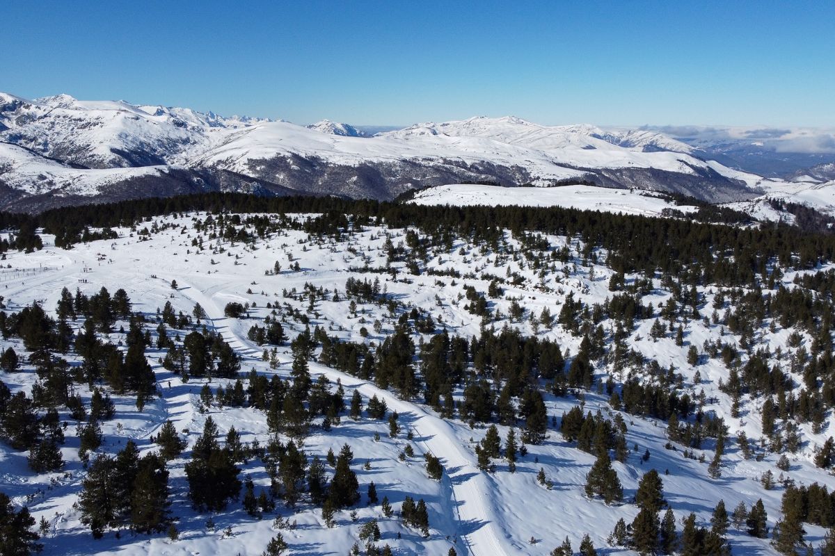 El acceso habitual es en coche por Les Cabannes, con el equipamiento invernal que toque según el día. Desde el valle hasta la meseta hay 11 kilómetros de ascenso, una subida constante que, con nevada, se hace lenta pero muy llevadera si vas con tiempo y cabeza. La estación se mueve en una franja de 1.800 a 2.000 metros, así que incluso con jornada cerrada suele haber ambiente nórdico de verdad.