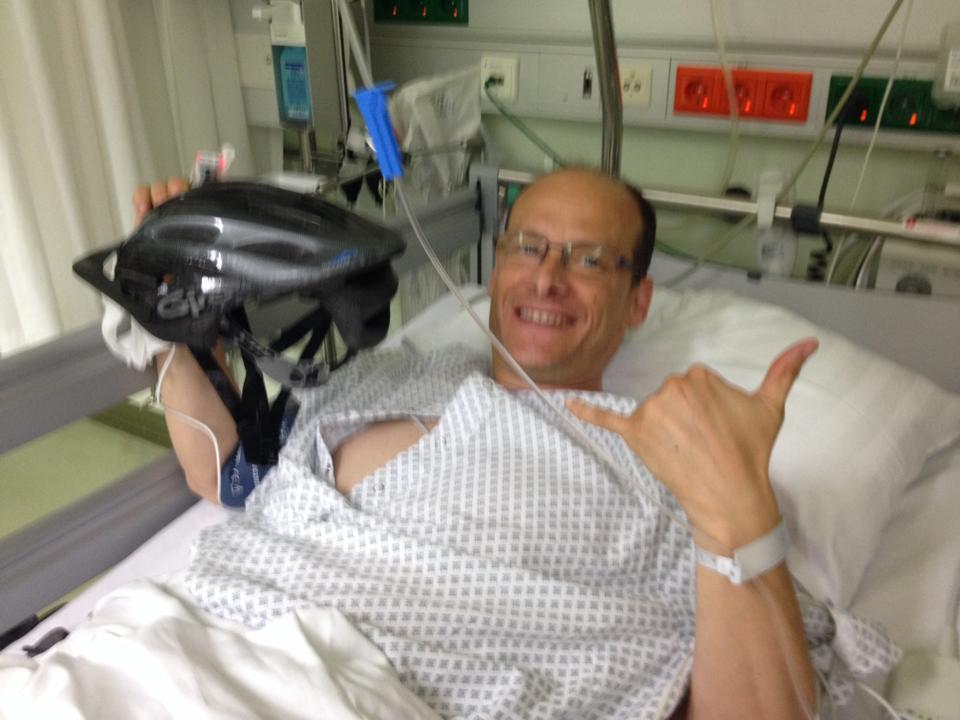 Ricardo Adarraga se fracturó la calvicula izquierda en un accidente, tras un reventón de la rueda delantera de su bicicleta cuando bajaba del monte Königstuhl , en Heidelberg