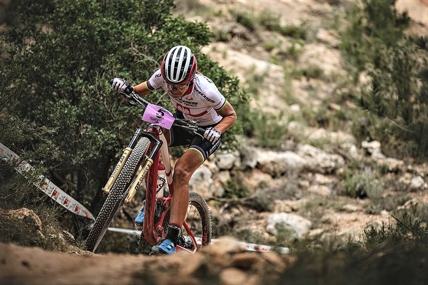 En tercera posición terminó Yana Belomoina, otras de las figuras femeninas del XCO femenino mundial. La ucraniana fue de menos a más y superó a la francesa Loana Lecomte a la que un pinchazo en la última vuelta le privó de luchar por el podio con Belomoina. Txell Figueras acabó en la octava posición, a once minutos de la ganadora, pero con buenas sensaciones en sus piernas. La catalana destacó que “la carrera fue bien. Poco a poco voy cogiendo ritmo de carrera y mejorando prestaciones. No ha sido un inicio fácil de temporada, ya que en la Mediterranian Epic -carrera de 4 etapas- de hace dos semanas acabé muy cansada de piernas. No tuve tiempo de recuperar y afronté la Super Cup Massi de Banyoles y acto seguido la prueba de Chelva. Poco a poco voy recuperando buenas sensaciones en las piernas y satisfecha por la octava posición.”