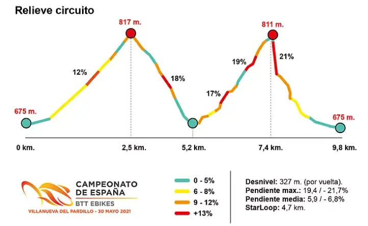 El recorrido está localizado a las afueras del casco urbano de Villanueva del Pardillo, en pleno monte del Barrancón, junto a su aeródromo, que servirá de centro de operaciones de la prueba. Se trata de un circuito de 7,4 kilómetros marcado por dos grandes ascensiones que arrancan a 675 metros de altitud y alcanzan los 817 metros en su parte más alta. Una primera subida de 2,5 km. por pista, y sin grandes porcentajes donde los ebikers podrán exprimir todo el potencial de sus eMTB. A la segunda cima se llega por un camino más exigente y técnico con rampas que superan el 21%.