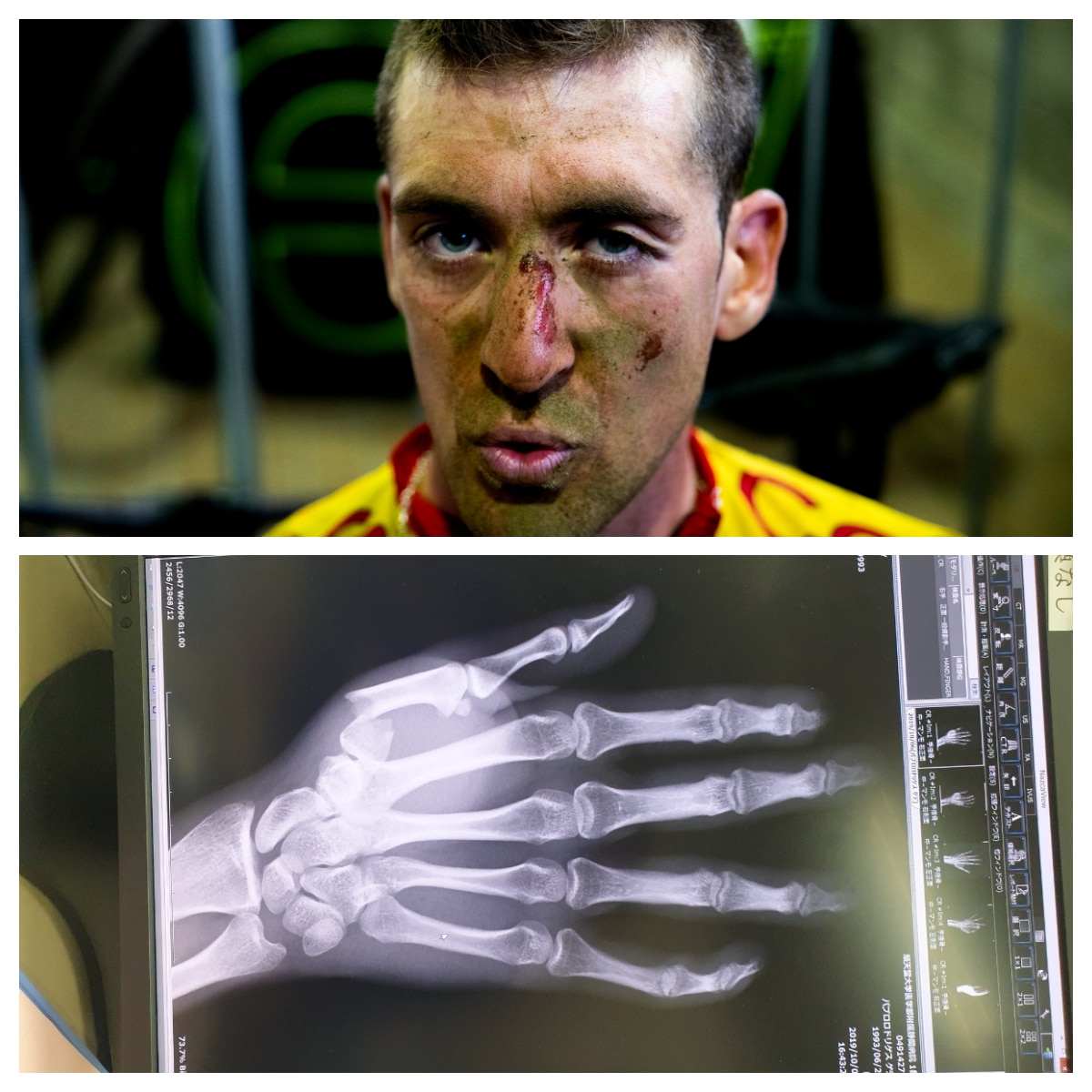 Tras la primeras revisión médica se confirmo que Pablo Rodriguez sufrió una fractura del pulgar de la mano derecha que requerirá cirugía. En Tokio, el ciclista PMR Racing recibió una cura para poder viajar a España donde será intervenido.