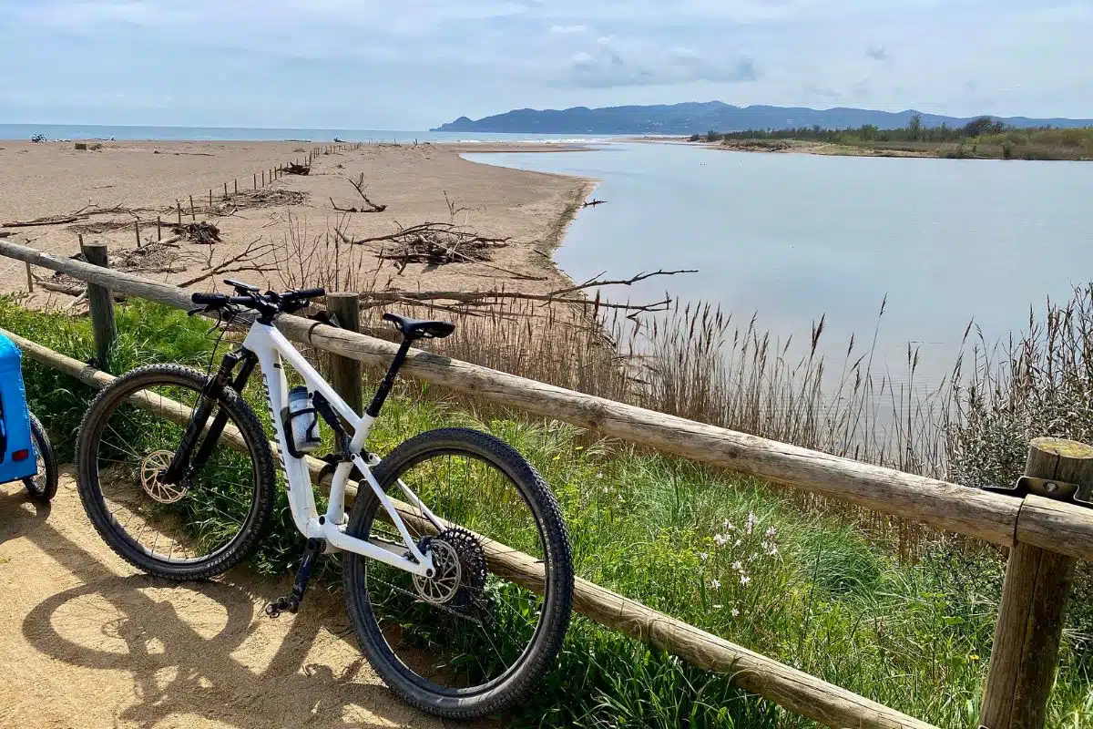 La ruta arranca entre l’Estartit y Torroella de Montgrí, siguiendo el curso del Ter durante más de 20 km por una pista paralela al río, ideal para calentar piernas y mente. El terreno es mayoritariamente ancho, sin tramos técnicos relevantes, lo que convierte este recorrido en una excelente opción tanto para bicicletas gravel como para MTB/BTT.