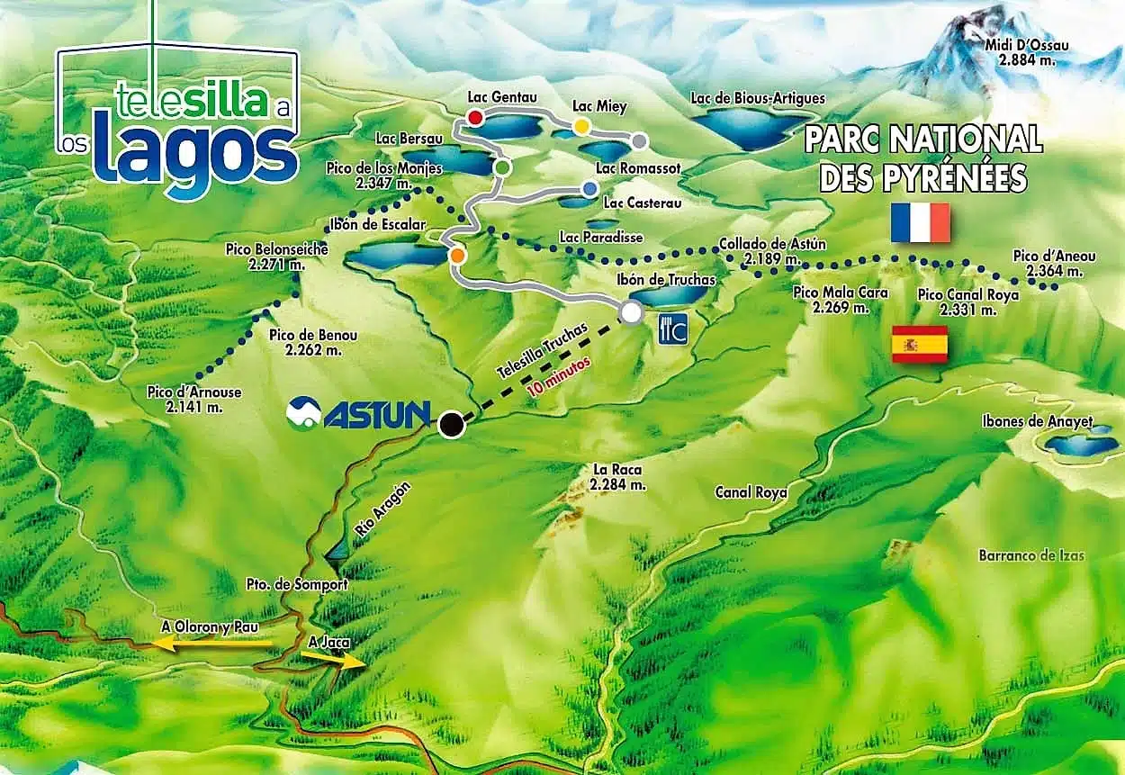 A unos veinte minutos del Ibón de Truchas, se encuentra el Ibón de Escalar o de las Ranas, donde nace el río Aragón. Si no tenemos suficiente con los dos lagos aragoneses del Valle del Aragón que están a tiro de piedra del remonte de Astún podemos plantearnos continuar el recorrido para conocer el valle del pirineo francés d’Ossau, de los que forman parte los lagos del resto de recorrido y que conforman los lagos d’Ayous.