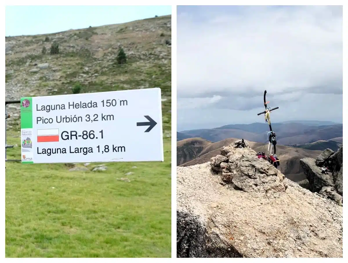 Desde la bifurcación, nuestro camino se dirige hacia la Laguna Helada, avanzando a través de una estepa herbosa y tranquila. El sendero cruza el arroyo que bajamos previamente y asciende por la loma izquierda hasta conectar con una pista forestal, que nos guía directamente hacia la base del Pico Urbión. Allí, nos topamos con una peculiar cruz y un letrero que marca el último tramo de nuestra ascensión.