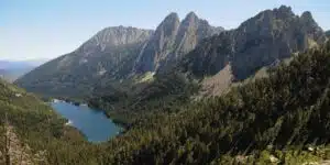 El descenso comienza dirigiéndonos hacia la Laguna Larga, siguiendo el cordal hacia el este. Este segmento puede resultar algo resbaladizo, especialmente en invierno debido a la nieve. Bajamos hasta llegar a la Laguna Larga y desde allí seguimos una senda claramente marcada que atraviesa un pastizal y nos introduce en un bosque de pinos, guiándonos de vuelta a la Laguna Negra. Este punto marca el cierre de nuestro recorrido circular, permitiéndonos disfrutar por última vez de las vistas del lago antes de volver al aparcamiento.