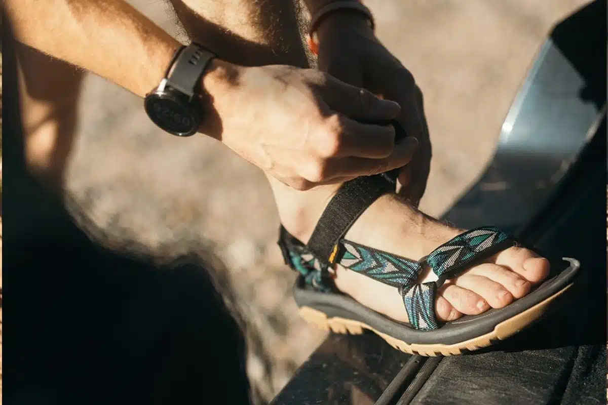 Pero no todo es apariencia. En el corazón de cada sandalia Teva hay una ingeniería pensada para rendir en entornos outdoor. Las correas de secado rápido, fabricadas con plástico 100 % reciclado REPREVE®, garantizan un ajuste preciso incluso en condiciones húmedas. Incorporan un sistema de cierre por velcro, fácil y eficaz, con puntas moldeadas que facilitan su manipulación, incluso con las manos mojadas o con guantes.