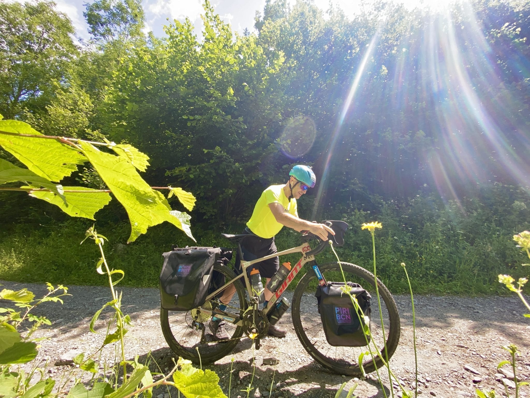 Dos semanas sin apenas incidencias destacables, pero acompañado de altas temperaturas. Sólo un pequeño susto en la segunda etapa entre Girona y La Pobla de Lillet de 103,5km. y casi 2400 metros de desnivel positivo. El deportista estuvo a punto de desfallecer por deshidratación. Tal y como reconoció al manifestar que “hacía mucho tiempo que no lo vivía. La deshidratación llevada al extremo. El calor ha sido sofocante, y entre las 14h y las 16h, con temperaturas de 36/37 grados positivos. Los dos puertos finales me han dejado vacío, sobre todo el de Canes. Hasta llegar a ese momento han sucedido muchas cosas, de las que aprender, y me las he apuntado a «fuego» en mi cabeza. La primera es que con estas temperaturas se tiene que salir más temprano, y la segunda es que, con las alforjas, y el peso que llevo, no puedes aventurarte a entrar en senderos demasiado técnicos por bonitos que sean. De hecho he tenido que arrastrar los casi 50 quilos de la bicicleta en más de una ocasión” .