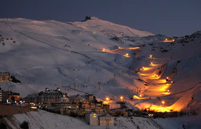 Sierra Nevada pone en marcha la experiencia del esquí nocturno cuando las condiciones lo permiten. Esta temporada abre todos los sábados de febrero la emblemática pista El Rio para sentir las sensaciones de descender bajo la luz de la luna y de los focos. El horario nocturno va de 19.00h a 21.30h, siendo la última subida del telecabina Al Ándalus a las 21.00h. La pista de El Rio tiene 3,3 kilómetros y un desnivel de 600 metros. Es posiblemente el trazado más conocido de la estación granadina ya que nos lleva hasta la base de la estación en Pradollano. Se trata de una pista azul que comienza a 2.681 metros de altitud y desciende hasta los 2.149.