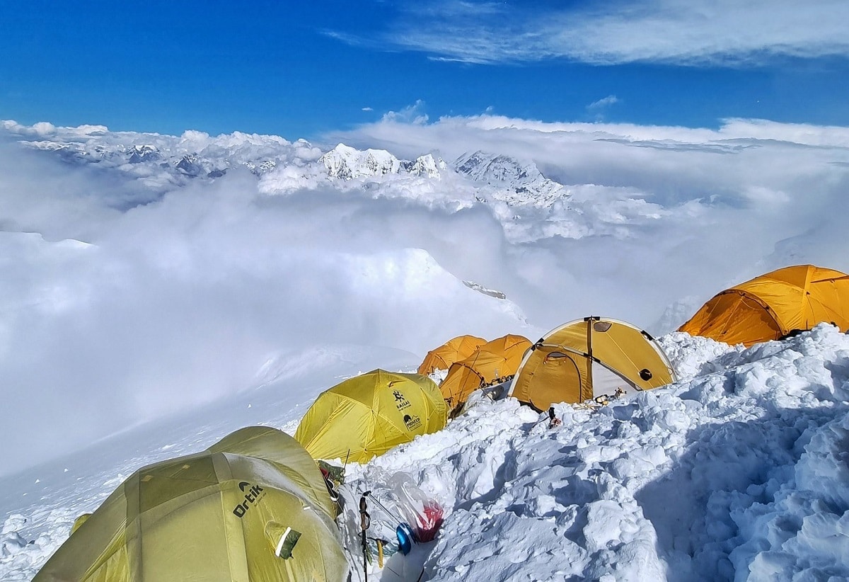 El grupo de tiendas instaladas en el C2 del Dhaulagiri a 6.400 metros. (Copyright/S.Troguet)