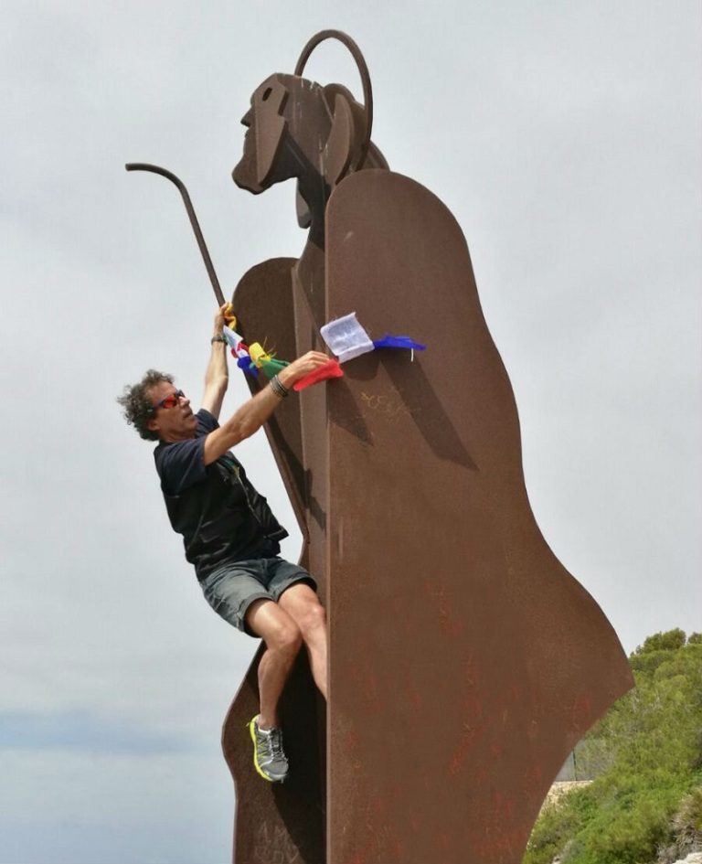 Òscar Cadiach ha visualizado una ofrenda tibetana en el monumento de Sant Magí, entre la playa de l’Arrabassada y la del Miracle de Tarragona. Ha sido su despedida antes de