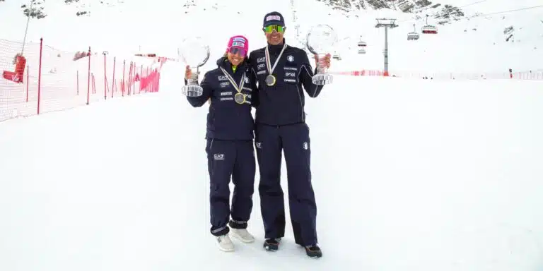 Los italianos Simone Origone, 44 años, y Valentina Greggio, 33 años, levantan su 15º y 6º Globo de Cristal de la Copa del Mundo de esquí de velocidad. Simone Origone