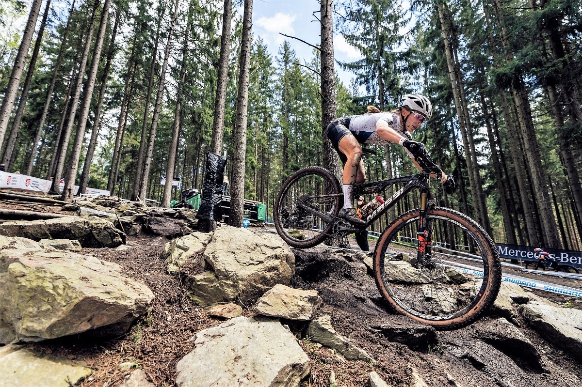 Muchas bikers a la edad de Loana Lecomte, 21 años, estarían corriendo la categoría sub-23, pero su interés por luchar por una plaza olímpica y su potencial como ciclista aceleraron su debut en la categoría élite. En Albstad ya hizo una demostración de poderío físico y pilotaje. En Nove Mesto más de lo mismo, pero sobre un recorrido, a cinco vueltas, que presentaba muchas trampas por la fuerte lluvia caida el dia anterior.