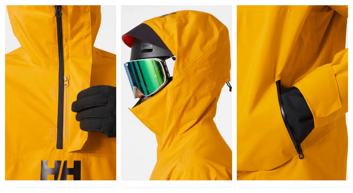 Los esquiadores de la generación Z, Simon Hillis y Marcus Goguen, fueron los encargados de ayudar en el rediseño y la nueva conceptualización de la Ullr D Insulated Anorak Jacket. El anorak es muy confortable sobre la nieve polvo, gracias a la construcción Helly Tech® Performance. Este sistema a prueba de viento, impermeable y transpirable, ofrece la máxima protección en actividades de alto rendimiento y en condiciones climáticas desafiantes e impredecibles.