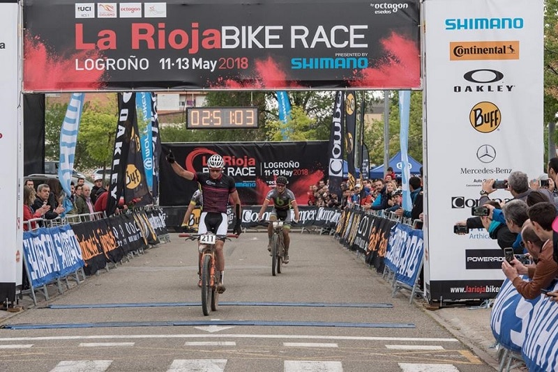 La segunda etapa de La Rioja Bike Race se ha decidido en un apretado esprint disoputado en la meta de Logroño. El biker holandés Mathieu Van der Poel (Corendon-Circus) se ha impuesto por escaso margen al ibizenco Enrique Morcillo (Buff-Scott MTB) y al rumano Vlad Dascalu (Brújula Bike Racing), en una etapa muy exigente. Van der Poel se mantiene al frente de la clasificación con casi tres minutos de ventaja sobre Carlos Coloma. En categoría femenia, la noruega Hildegunn Hovdenak (VPG) ha llegado en solitario y ha superado a la catalana Clàudia Galicia (Megamo) segunda, pero que mantiene sin problemas el liderato de la general. Si no hay contratiempos en la tercera y última etapa todo apunta a que Mathieu Van der Poel y Clàudia Galicia ganaran la quinta edición de La Rioja Bike Race.