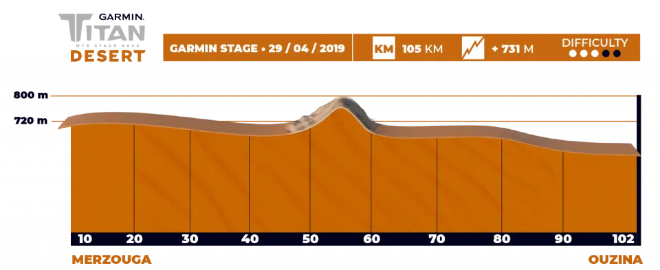 Recorrido de auténtico desierto. La etapa Garmin se realizará sin ayudas a la navegación y serán los corredores quienes deberán trazar su estrategia para completar el recorrido. La salida de esta etapa, para los primeros clasificados y clasificadas, se hará de uno en uno cada 30 segundos.